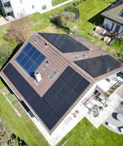 Bereits 2022 ersetzten wir die alte Elektrospeicherheizung durch eine thermische Solaranlage, einen KWB-Pelletkessel und einen Swiss Solartank als Wärmespeicher. Im Frühling 2024 folgte der nächste Schritt: Wir ergänzten die Anlage um Photovoltaik und einen Batteriespeicher. Damit wird nicht nur Wärme, sondern auch Strom direkt vor Ort produziert und genutzt.
