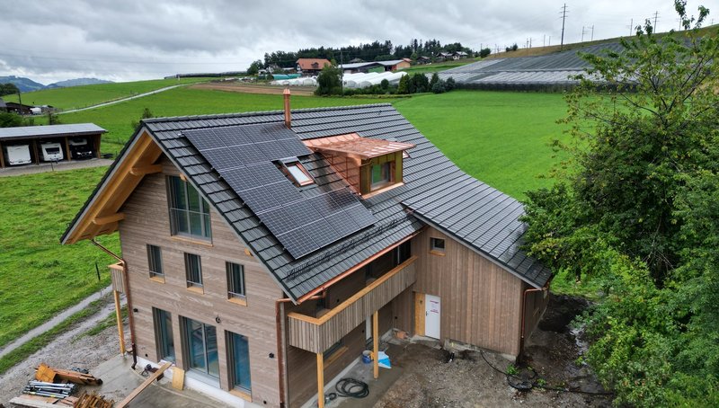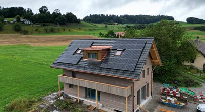 Bei der energetischen Sanierung eines Einfamilienhauses in der Region Bern durften wir dabei unterstützen, das Haus so energieeffizient wie möglich zu machen. Neben der Aufdach-Photovoltaikanlage auf beiden Seiten des Daches konnten wir im Keller einen Swiss Solartank mit integriertem Elektroeinsatz einbauen. Ein Projekt, welches zeigt, dass energetische Sanierungen auch ästhetisch ansprechend gestaltet werden können.