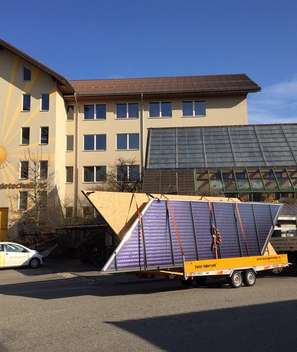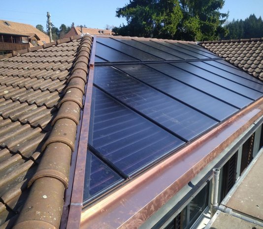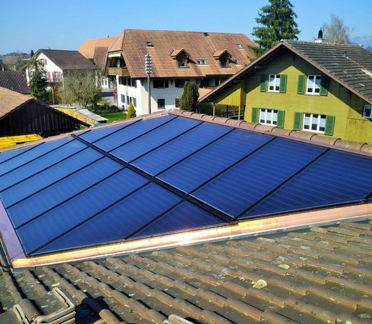 Mit Sonnenkollektoren holen Sie auch bei Dachschrägen das maximale energetische Potential aus Ihrem Dach raus! Unsere Partner Firma «Winkler Solar» produziert Grossflächenkollektoren mit Sondermassen und Schrägen, bei welchen die Module bis in den Randbereich voll funktionsfähig sind.
