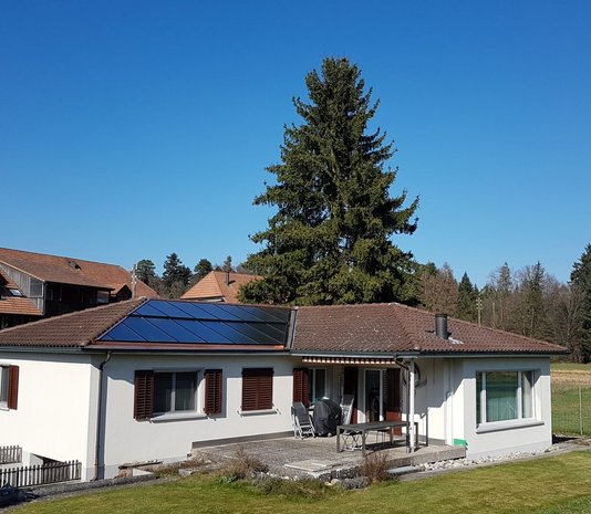 Eine Anlage dieser Grösse deckt im Durchschnitt den jährlichen Warmwasserbedarf von 6 Personen zu 100% und leistet einen beträchtlichen Anteil an die Heizungswärme.