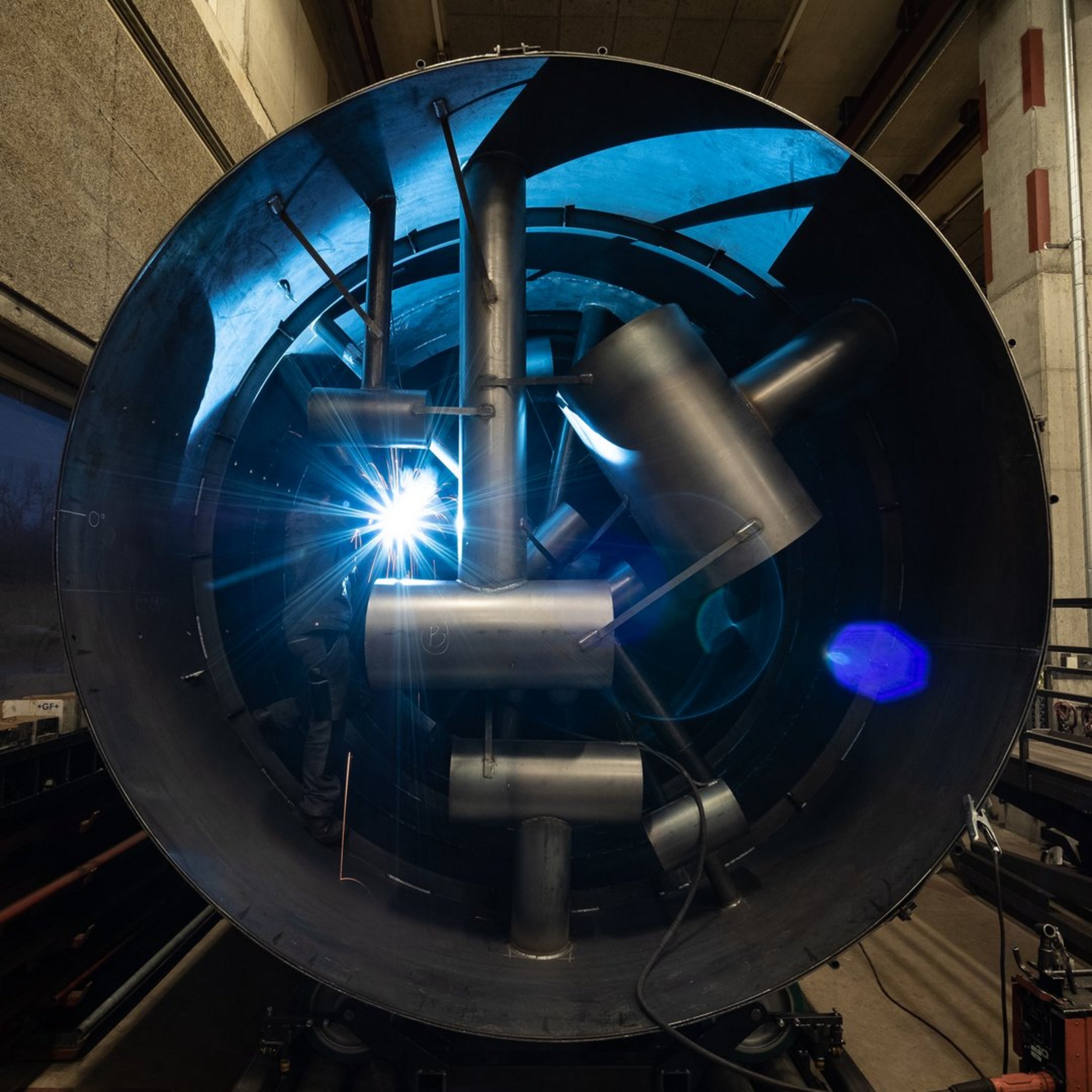 Wir bringen den in Einzelteilen vorgefertigten Speicher und schweissen ihn direkt vor Ort im Keller oder Gebäude zusammen.